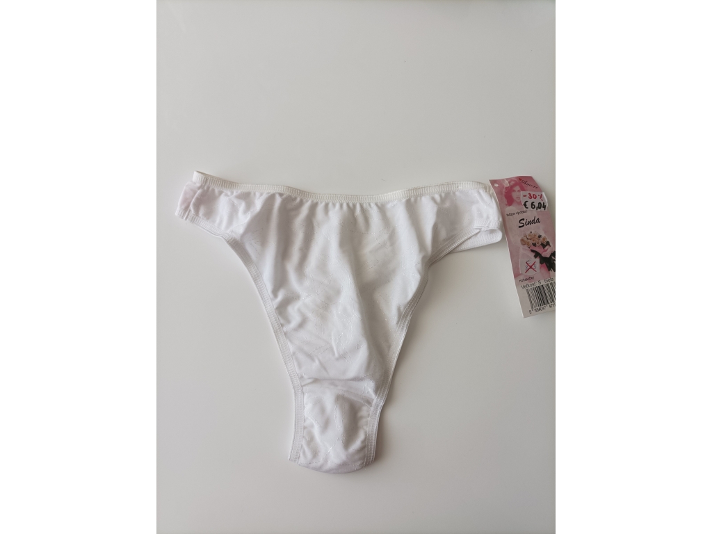 Elegatné dámske tango nohavičky bielej farby zdobené striebornou niťou.