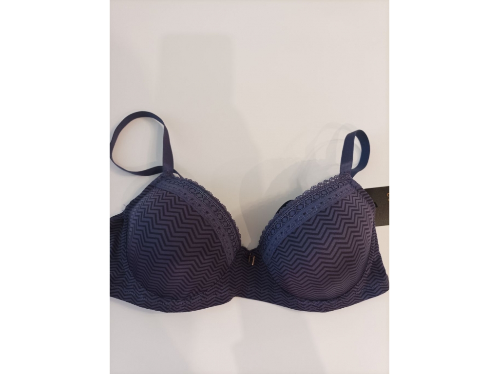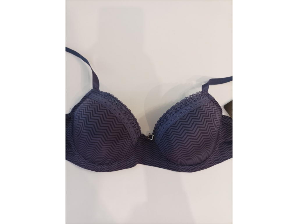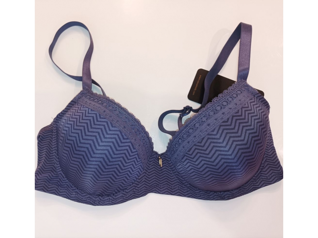 Moderná podprsenka s jemne vystuženými košíčkami z kolekcie Sassa Mode. Podprsenka je v zaujímavom odtieni modrofialovej s módnym vzorom. Stredne vysoký stred je zdobený kovovou aplikáciou. Úzke neodopínateľné ramienka sú ľahko upraviteľné vďaka posunovacej na gume na zadnej strane. Zapínanie je na tri háčiky a tri pozície. K podprsenke krásne ladia aj nohavičky 45255 , ktoré máme tiež v ponuke.